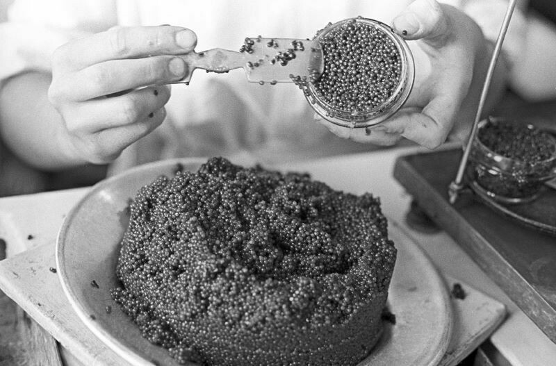 Черная и красная икра были намного доступнее для советского человека, чем сейчас. Купить можно было в маленьких стеклянных баночках. Почему черная икра сегодня такая дорогая? Раньше браконьеры орудовали меньше, поэтому недостатка осетровых и икры не было. После 90-х браконьеры, что называется, «разрослись». Итак, очередным кадром советского фуд-блогера могла бы стать фотокарточка того, как на рынке на раскладывают икру по тарам. Выглядело бы довольно аппетитно.