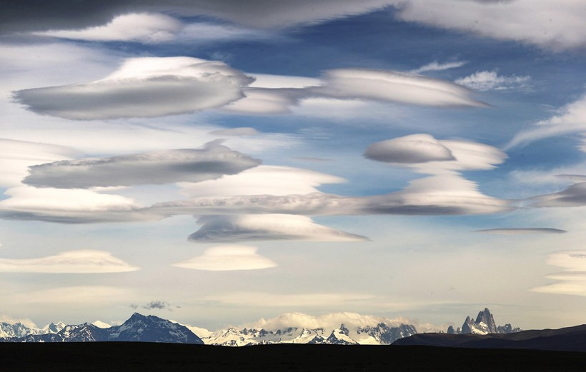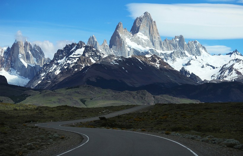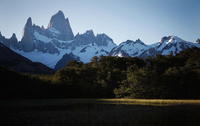 Прямо перед вами вершина Фицрой, разделяющая границы Аргентины и Чили, она возвышается на 3,4 тысячи метров над уровнем моря.