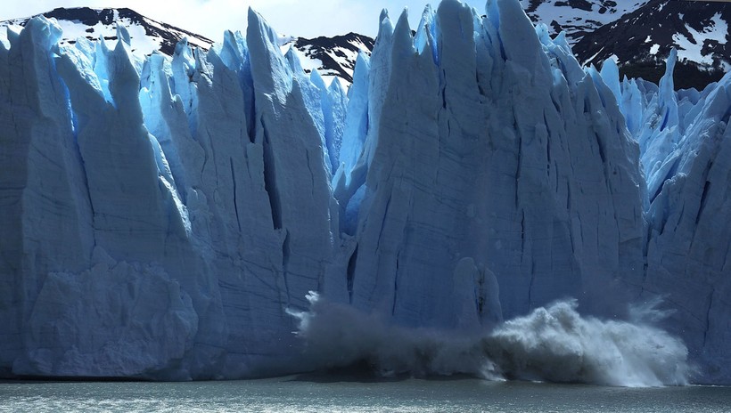 Вы можете видеть, как от ледника отделяется огромный айсберг.