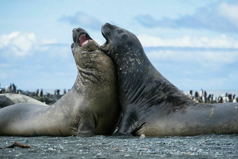 Люди тут ― гости, и животные их совершенно не замечают. Они все так же занимаются своими привычными делами: птицы летают, морские слоны увлечены брачными играми, а пингвины заботятся о потомстве. Стоит немного подождать, и птицы сами подходят очень близко к человеку.