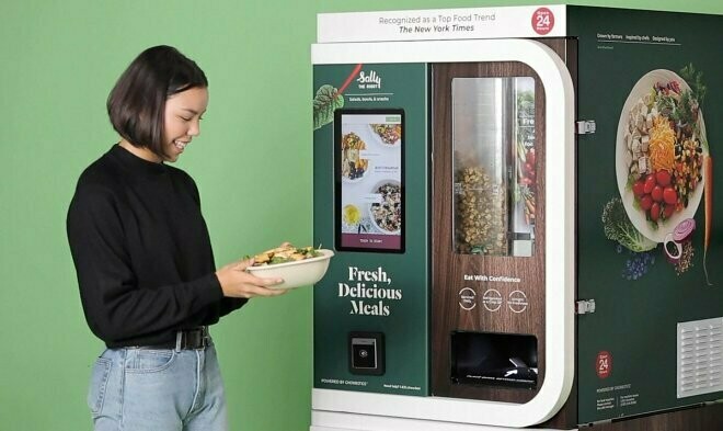 Стоит сразу пояснить, что проект уже перекупила служба доставки, а значит, в первую очередь она будет эксплуатировать эту технологию. И задумка этого робота состоит в том, что человек удаленно заказывает у него смесь из определенного набора продуктов, а в результате получает салат, который курьер забирает и доставляет. Сама прелесть идеи в том, что покупатель может все выбрать сам, а машина тут же запустит приготовление, что практически полностью избавляет от человеческого фактора и навязанных другими вкусовых стандартов.