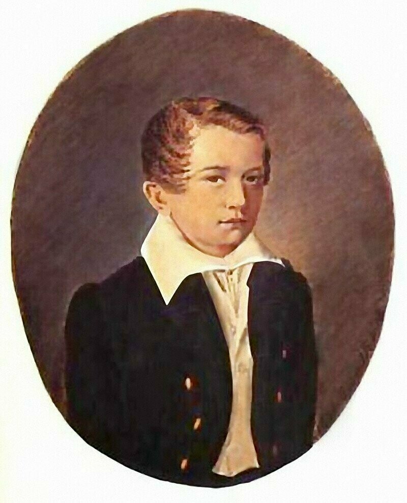 Его детство, в отличие от Тургенева, было светлым и радостным. Мальчик хоть был из знатного рода, рос трудолюбивым и вовсе не капризным. Даже на своем портрете будущий писатель изображен с книгой, и это не просто постановочный кадр, а его любимое занятие. В возрасте восьми лет друг Толстых Жуковский представил юного Алексея своему венценосному воспитаннику — будущему Александру II. Каждое воскресенье Алешу увозили играть во дворец с наследником престола. Их дружба была крепка, оба дорожили ею и пронесли через всю жизнь.