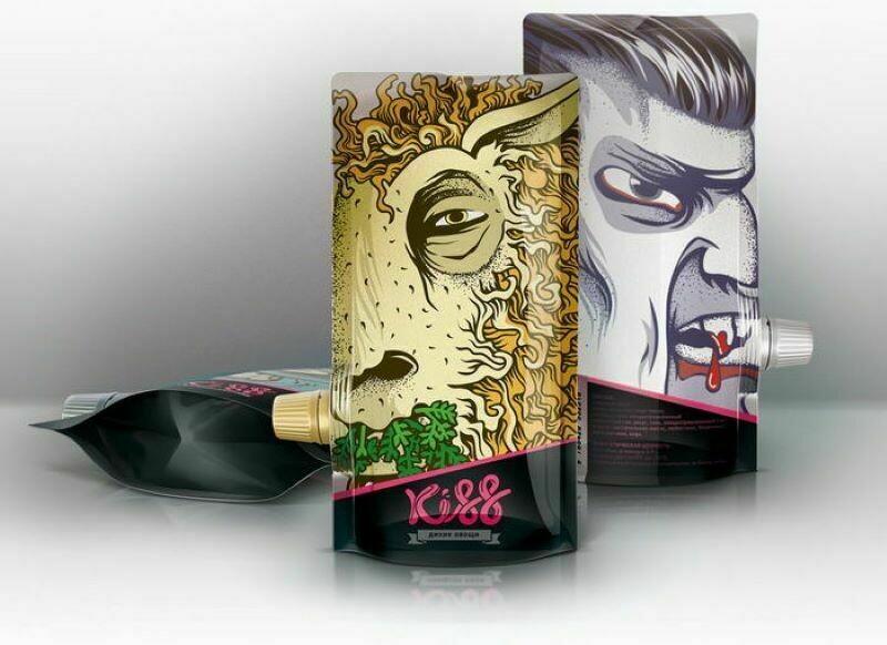 Сперва может показаться, что это майонез или кетчуп, но нет, в такой упаковке выпускают пюре из различных фруктов. Почему же поцелуй? Рассмотрите упаковку повнимательнее: на каждом из тюбиков нарисован какой-либо сказочный или даже мистический персонаж. Прикасаясь губами к упаковке вы как будто целуете нарисованного героя.