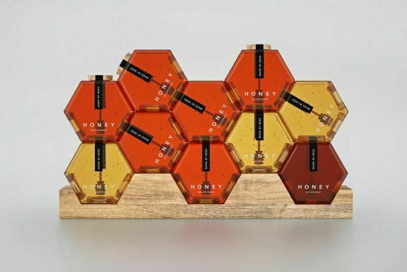 Баночки для меда, вдохновленные самой природой. Каждая из склянок сделана в виде сот из воска, из которых добывают пчеловоды мед. Выглядит очень привлекательно.