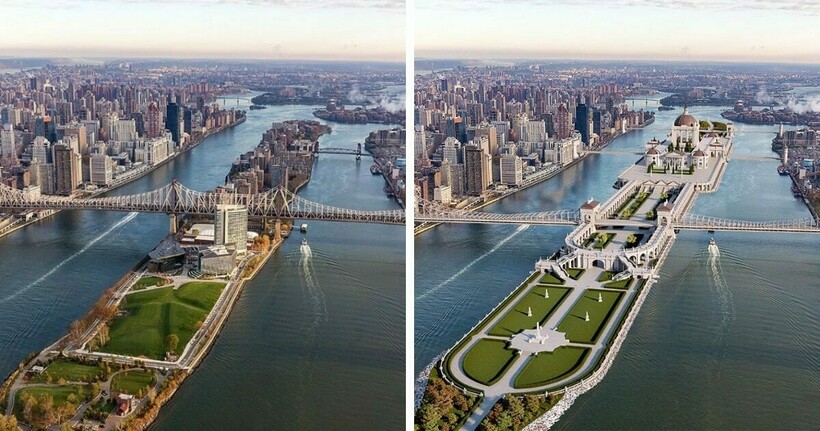 Узкий остров, пролегающий в проливе Ист-Ривер в центре Нью-Йорка