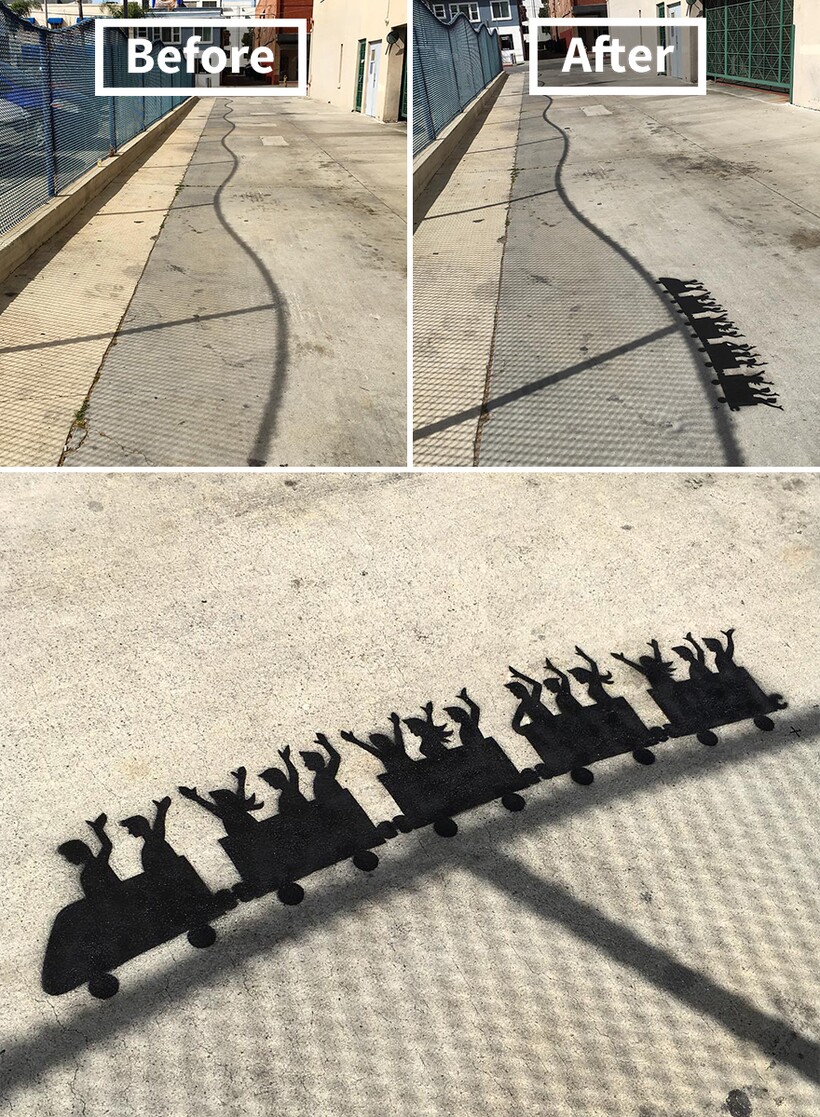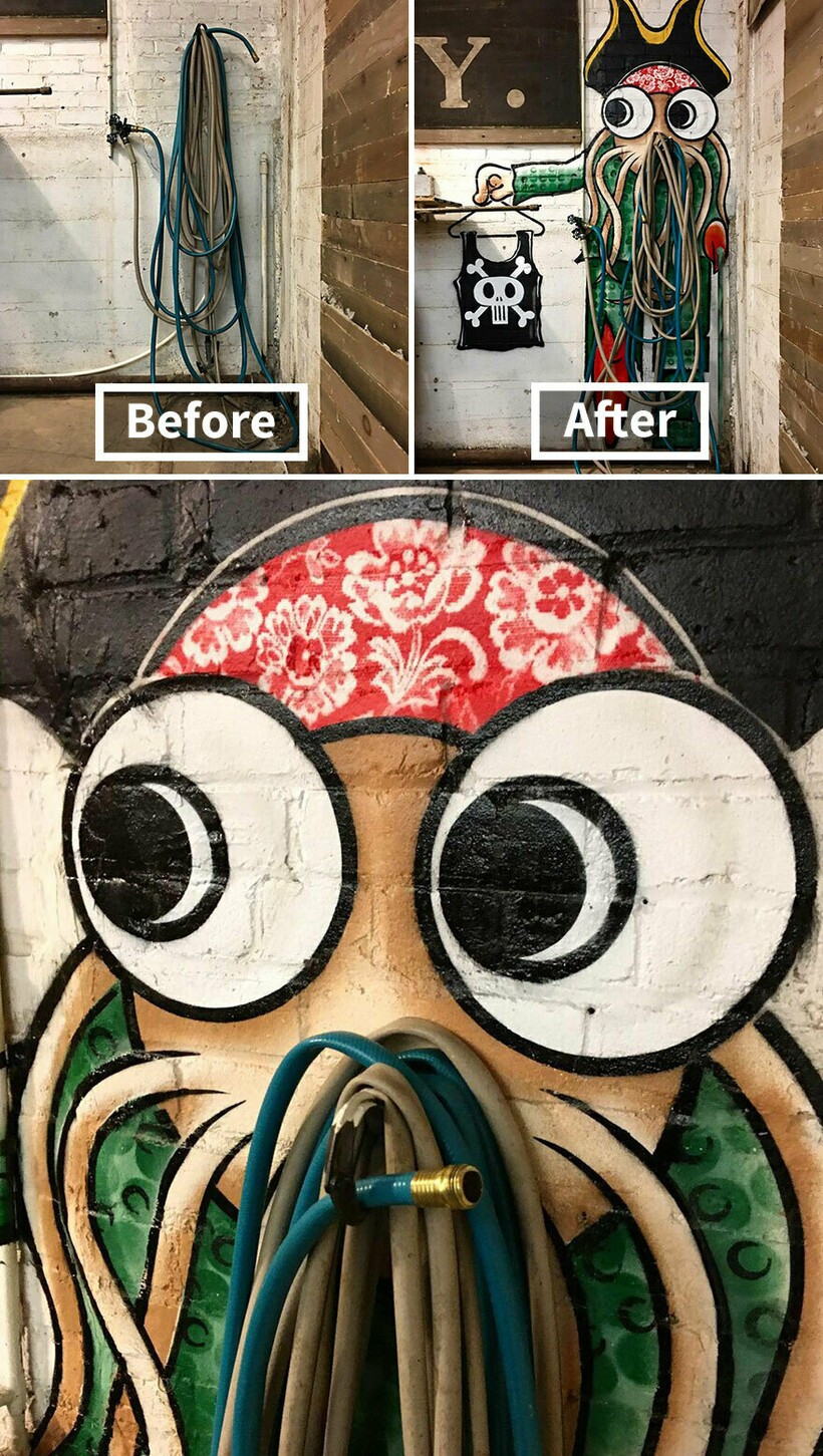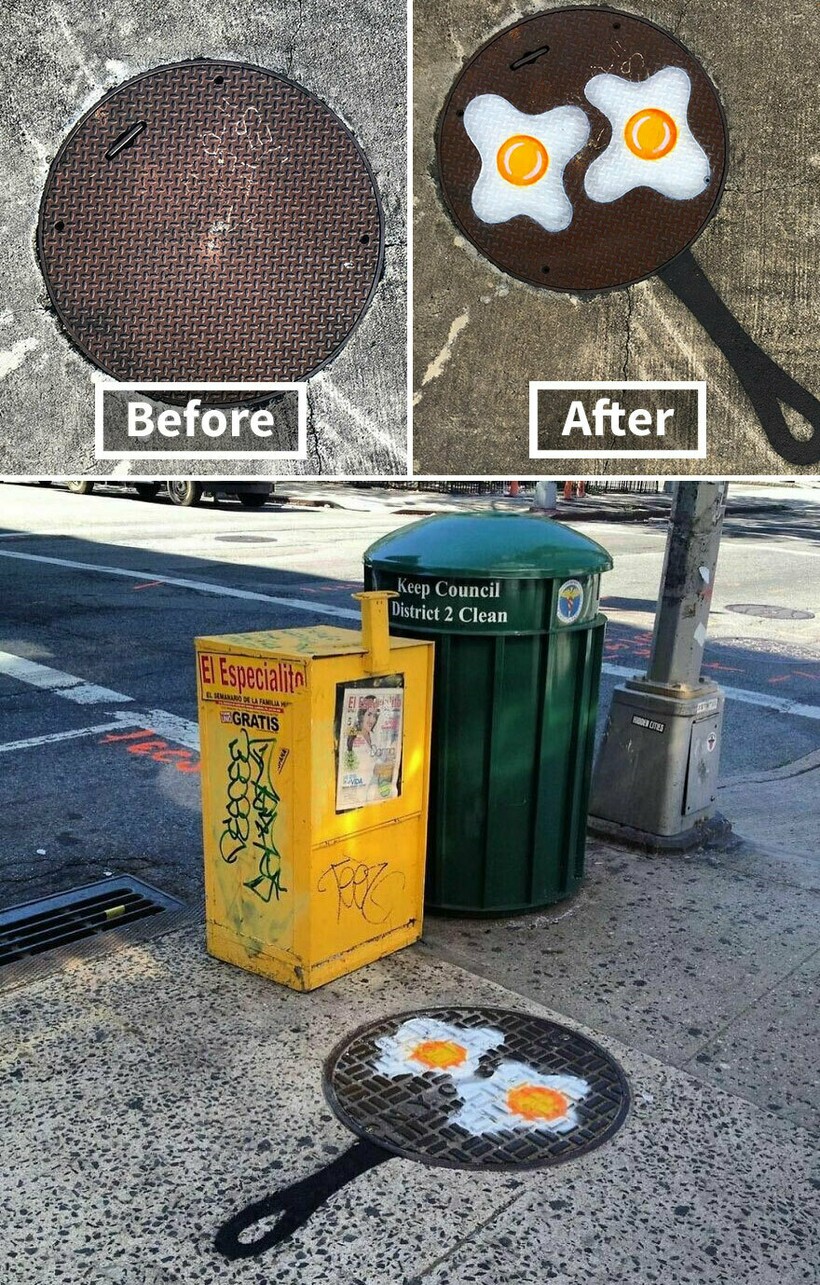 Том рисует мультяшных персонажей, превращая в них совершенно обычные предметы, на которые обычно мы не обращаем внимание. Столбы, пожарные гидранты, трубы или неровности на стене ― все это может стать настоящим произведением искусства.
