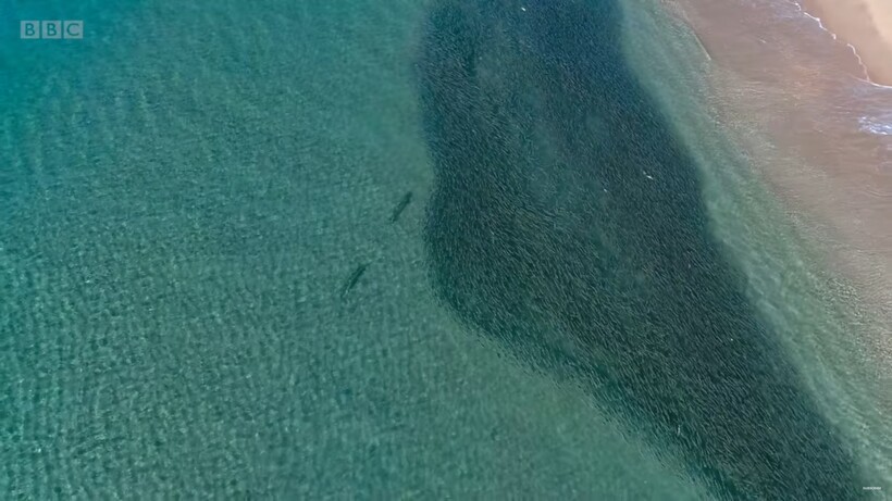 Расстояние не помешало такой крупной рыбе, как тарпон, почувствовать стаю кефали и приблизиться к ней. Атлантический тарпон проникает вглубь плотной стаи и, проплывая внутрь, поворачивается на бок, прежде чем осуществить свою восхитительную атаку. Кефаль в этот момент подбрасывает в воздух так, словно в воде произошел мощнейший взрыв. Пеликаны и акулы тоже не остались в стороне и решили пообедать этой славной рыбкой. Но численное преимущество кефали все же позволяет ей отбиться от врагов и отойти ближе к берегу для спокойного нереста.
