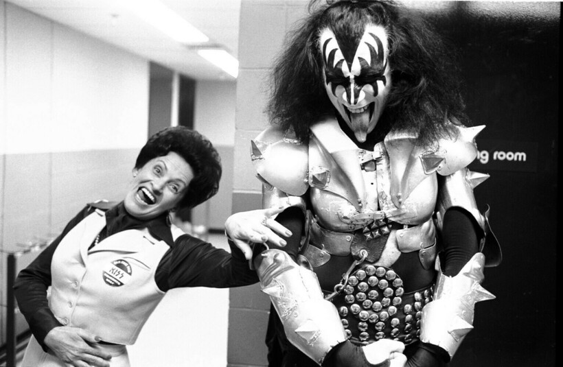 Джин Симмонс и его мама снялись во время концертной программы группы.