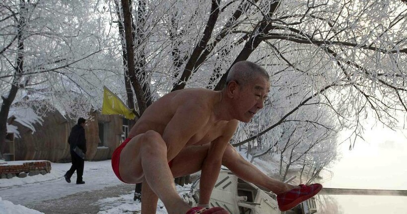 Спортом китайцы привыкли заниматься в любую погоду и в любом месте. Этому школьному учителю уже 77 лет, а он бодр и активен.
