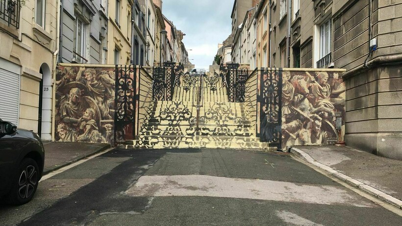 Каждый год во Франции проходит конкурс на лучший стрит-арт, и вот недавно был объявлен победитель 2020 года, им стал Гонсало Борондо. Холстом для него послужила каменная лестница в городке Булонь-сюр-Мер, который стоит на побережье Ла-Манша. Лестница находится на улице Jules Baudelocque, и издалека может показаться, что проход по ней перекрыт красивыми решетчатыми воротами, ковка которых напоминает металлическое кружево. Однако стоит подойти поближе, и секрет сразу разгадан: никаких ворот на самом деле нет, эти изысканные врата ― рисунок на лестнице.