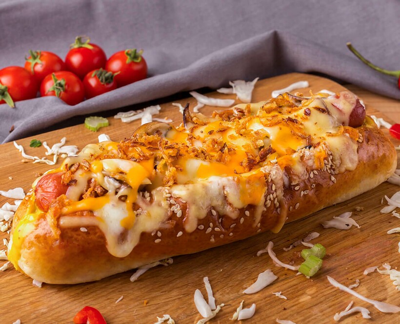 Американский фаст-фуд пестрит разнообразием хот-догов. Одним из множества вариантов этого блюда является его сырная версия, где к сосиске и булочке сверху добавляют приличный кусок сыра.