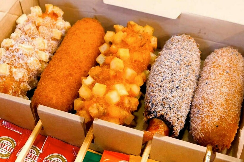 В этой версии блюда сосиска обмакивается в кляр и зажаривается перед помещением в булку. Кстати, может быть как на палочке, так и без нее.