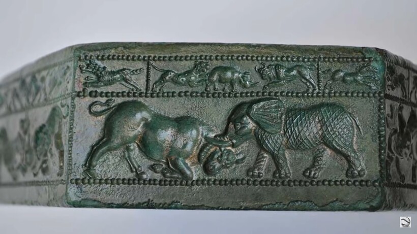 Ее вес — примерно 8 кг. Матрица имеет восемь граней, на которых расположены ныне существующие и мифические животные: львы, тигры, леопарды, носороги, а также грифоны. Интересный факт: на матрице отсутствуют растительные символы, а это значит, что она отражает битву между животными. Историки пояснили, что артефакт был создан в первом веке до нашей эры и имел очень высокую стоимость.