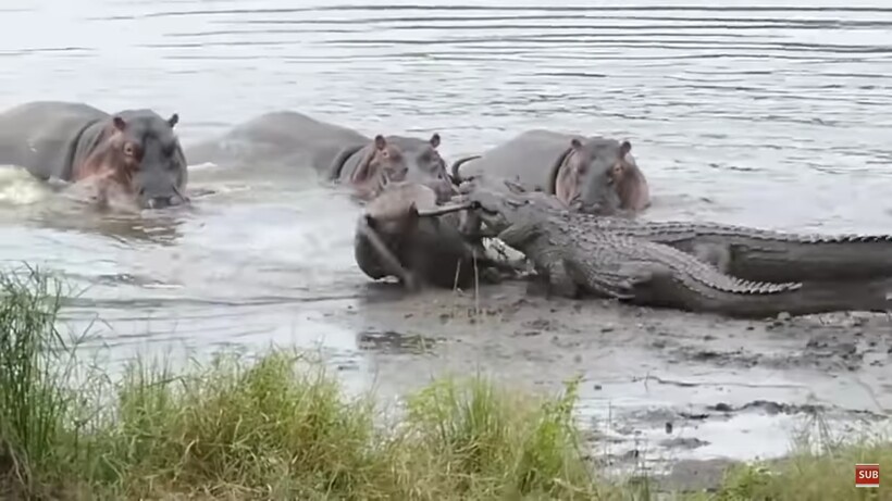 Участник сафари в национальном парке Крюгера стал свидетелем нападения крокодилов на антилопу гну. Пришедшая стая парнокопытных подошла к воде и не подозревала, что в ней скрываются крокодилы. Одна из рептилий схватила бедное животное за голову, а другая — за заднюю лапу, и вместе они потащили свою добычу на глубину. Располагавшиеся неподалеку гиппопотамы наблюдали за происходящим. Когда крокодилы оказались в непосредственной близости от бегемотов, последние начали кусать рептилий и бросаться на них, что позволило антилопе вырваться из пасти противника. Гиппопотамы проводили антилопу до берега, а та в свою очередь, прихрамывая на заднюю ногу, поковыляла обратно к стае.