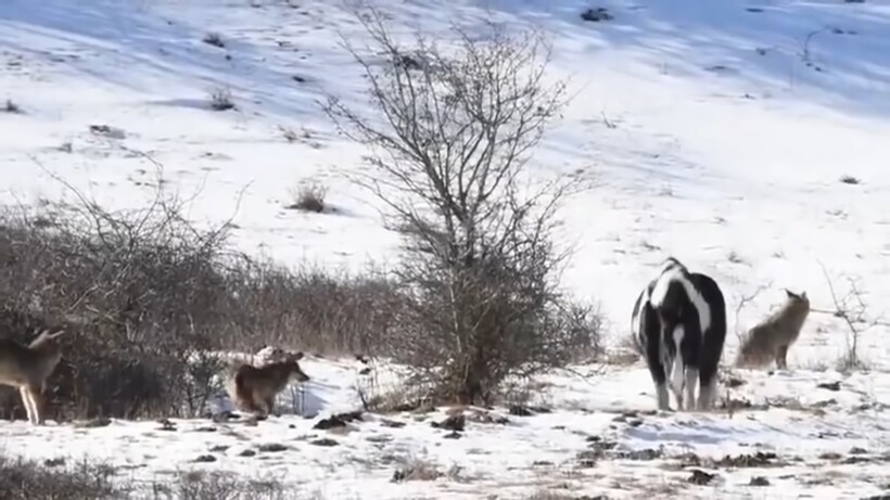 Лошади по своей физиологии тяжелее и крупнее волка, но, как правило, стая волков может легко свалить коня с ног. Но не в этот раз. Уникальная встреча этих животных произошла в Абруццо: лошадь оказалась в окружении шести волков, но те не проявляли никакой агрессии к млекопитающему.