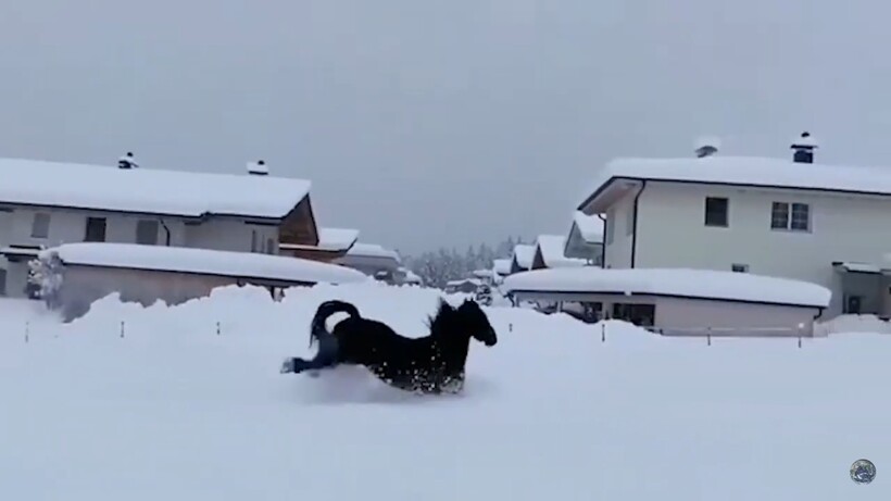 Черные жеребцы, которые стали героями видео ниже, так любят зиму, что готовы купаться в снегу. Они бегут по заснеженным сугробам, которые им совсем не мешают. Скорее наоборот, создают больший интерес. Кони ныряют с головой в снег и наслаждаются им словно дети.