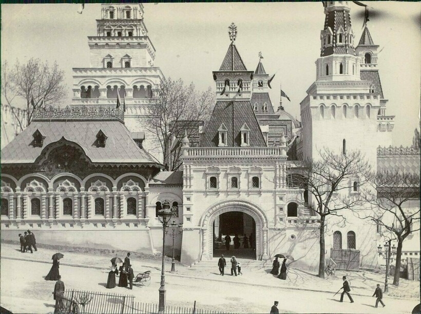 Главный павильон был построен по проекту Мельцера. Архитекторы попытались повторить Московский и Казанский Кремли. Рядом располагалась целая улица с барскими хоромами, русскими избами и деревенской церковью. Российская экспозиция тогда собрала почти 1600 наград.