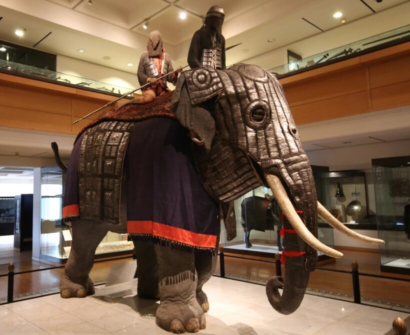 Самыми большими доспехами в мире считаются слоновьи. Они весят почти 120 кг, хотя и выполнены из легких железных пластинок в виде прочной чешуи. В средневековой Азии слоны часто использовались вместо лошадей — тяжело было спастись от наступления огромного зверя под руководством умелого воина. Как и конь, слон был верным другом и соратником воину, а потому его тоже требовалось защищать. Сейчас образцы таких доспехов можно увидеть в азиатских военных музеях.