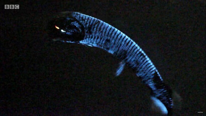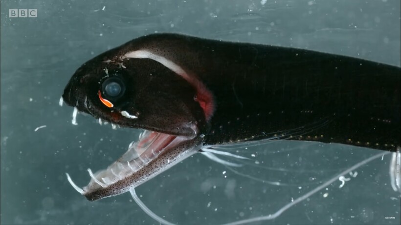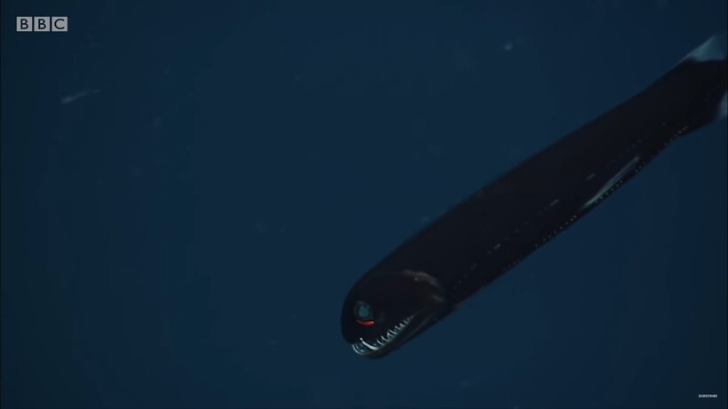 Знакомьтесь: этого страшилу называют идиакантом, его ищут на глубине до двух тысяч метров, и он привлекает исследователей своей необычной внешностью. Идиканта можно смело выдвинуть в лидеры самых страшных созданий подводного царства. Сэр Дэвид Аттенборо знакомит нас с биолюминесцентными существами, обитающими в кромешной тьме калифорнийского залива Монтерей, и с уникальными особенностями глубоководных рыб-драконов.