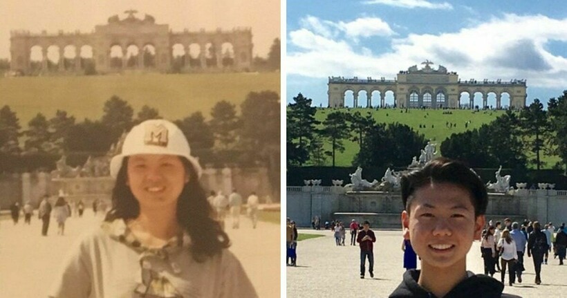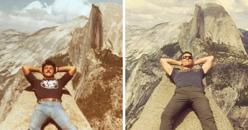 Молодой человек сделал фото на том же самом месте, что и его отец