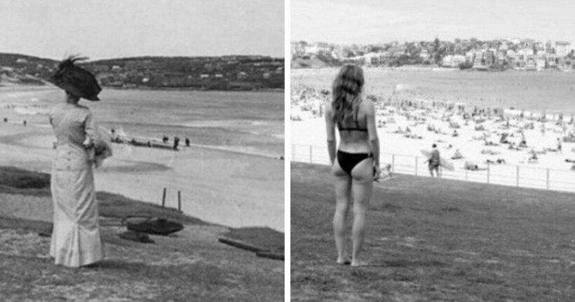 Самый популярный пляж Бонди в Австралии в 1910-м и спустя больше века