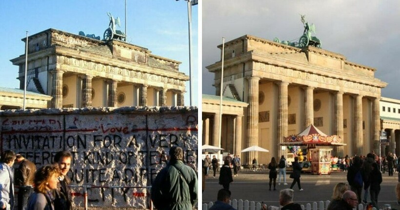 Фотографии одного и того же места до и после демонтажа Берлинской стены