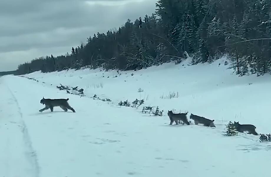 Мужчина в это время съехал на обочину и снял происходящее на телефон. Сначала он подумал, что приближающиеся фигуры — это олени или лоси, иногда здесь можно встретить даже волков или койотов. Но каково же было удивление водителя, когда на дороге он увидел группу диких кошек. Мужчину это очень поразило, ведь рыси — очень скрытные животные, большую часть времени они проводят прячась в густом лесу, а встретить их стаями — довольно редкое явление.