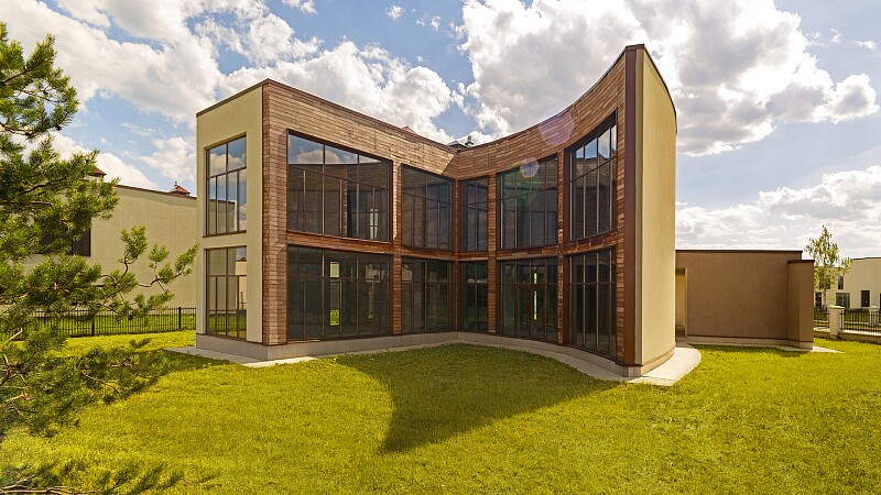 Оригинальный дизайн вышел несколько угловат, однако это нисколько не умаляет достоинств двухэтажного здания.
