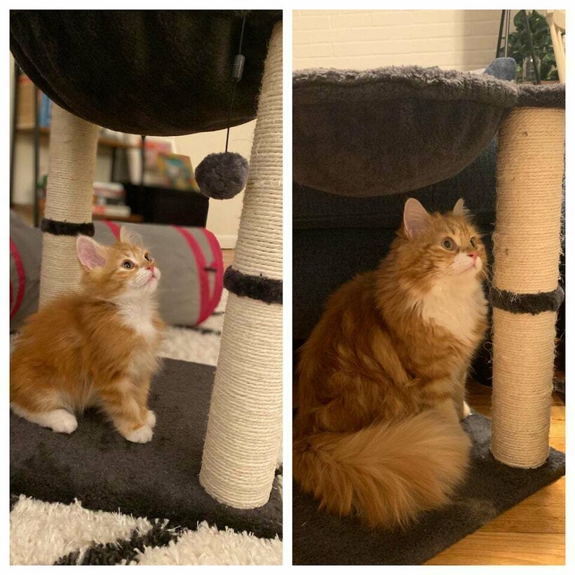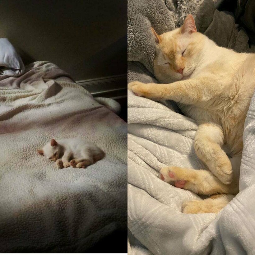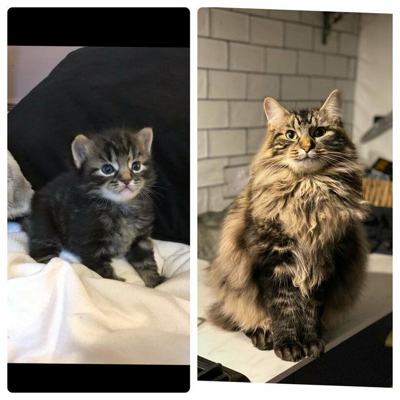 Иногда мы совершенно не успеваем понять, как растут наши питомцы. Удивительно, как быстро маленький пушистый комочек превращается в грациозную кошку, которая гуляет сама по себе. Совсем недавно он помещался на ладошке, и уже через несколько месяцев его не всегда можно удержать на руках.