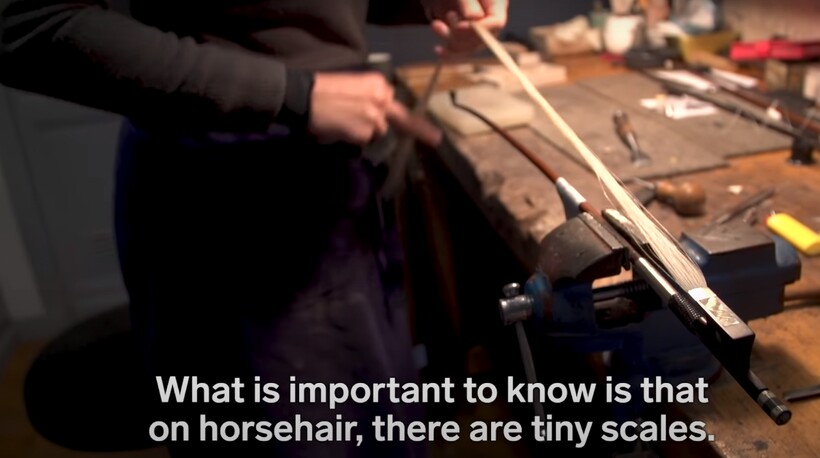 Смычки для скрипки намного сложнее устроены, чем кажется на первый взгляд. Как говорит один из мастеров в видеосюжете, идеальный смычок не должен чувствоваться, он должен быть словно продолжением руки скрипача. Кроме того, смычок должен улавливать даже еле заметные движения человека и молниеносно реагировать на них. В ролике показана работа Сандрин Раффин, мастера с 30-летним опытом по изготовлению смычков. Для того чтобы начать работу, женщине нужно собрать материал для будущего смычка со всего мира. Так, древесину ей поставляют из Бразилии, а конский волос — из Монголии.