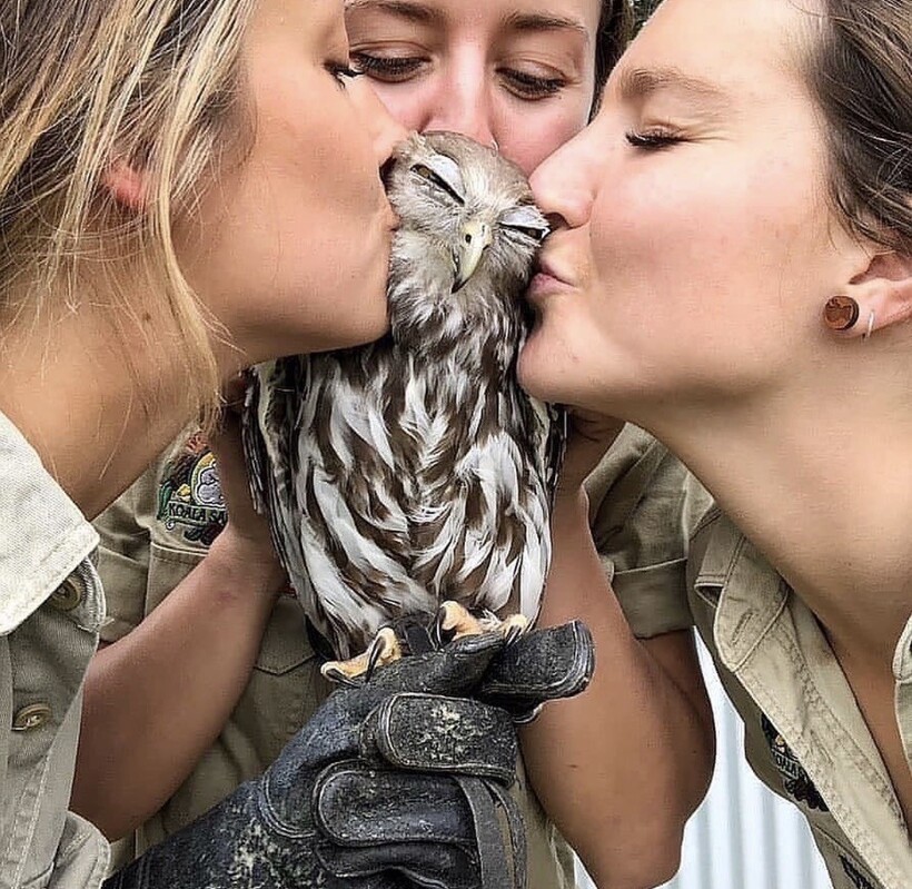 Эта совушка явно польщена вниманием, ведь от обилия поцелуйчиков она прямо засмущалась на камеру.