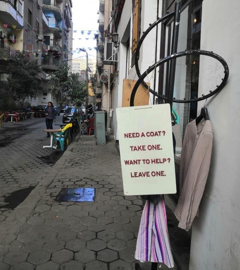 Многие также не забывают проявлять заботу и относительно тех людей, которым повезло меньше, чем другим. Так, на улицах городов все чаще можно встретить полочки, где люди оставляют вещи, которые по каким-либо причинам оказались им не нужны. Другие же могут просто, проходя мимо, взять себе то, что нужно, совершенно бесплатно. Такую практику благотворительной сдачи вещей используют уже долгое время в разных странах мира.