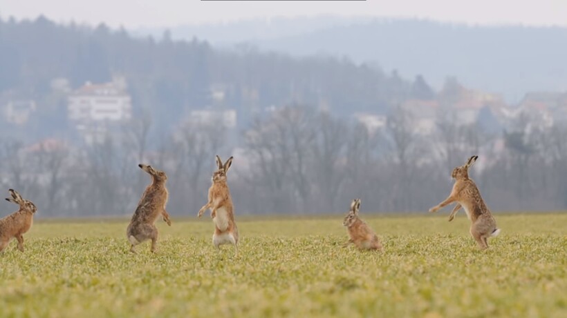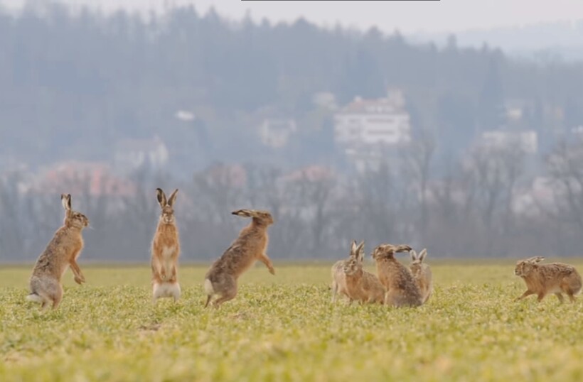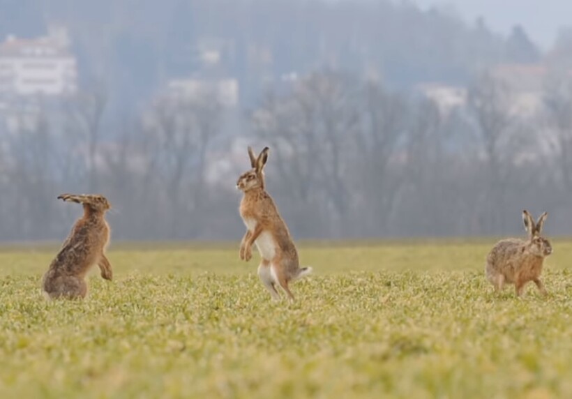 Но особенно любопытно наблюдать за брачными играми животных, когда они не напуганы, а наоборот, раскрепощены и активно проявляют свои умения и характер. Видео, приложенное ниже, было снято в Чехии, где русаки распространены не менее чем в России. Зайцы собираются небольшими группами и демонстрируют друг другу свои силы и умения вставать на задние лапы, прыгать и бегать. Все это не просто так и имеет свое значение.