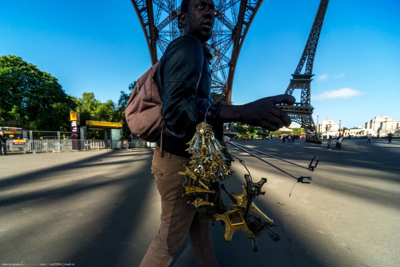 Oneuro. Новый символ Парижа. Африканский иммигрант, продающий сувениры под Эйфелевой башней.