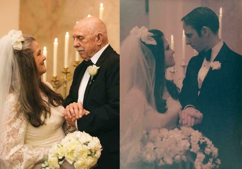 Вступая в брак, большинство молодоженов даже не представляют, сколько различных испытаний приготовила им судьба. Многие пары не выдерживают трудностей совместной жизни и расстаются, а самые стойкие переживают все невзгоды рука об руку. Примером крепкого супружества стала семья из Айовы, которая в этом году отметила 50-летие со дня заключения брачного союза. Кэролайн и Келли Гей сделали себе необычный подарок. Они провели повторную фотосессию их торжественного дня, состоявшегося пол века тому назад.