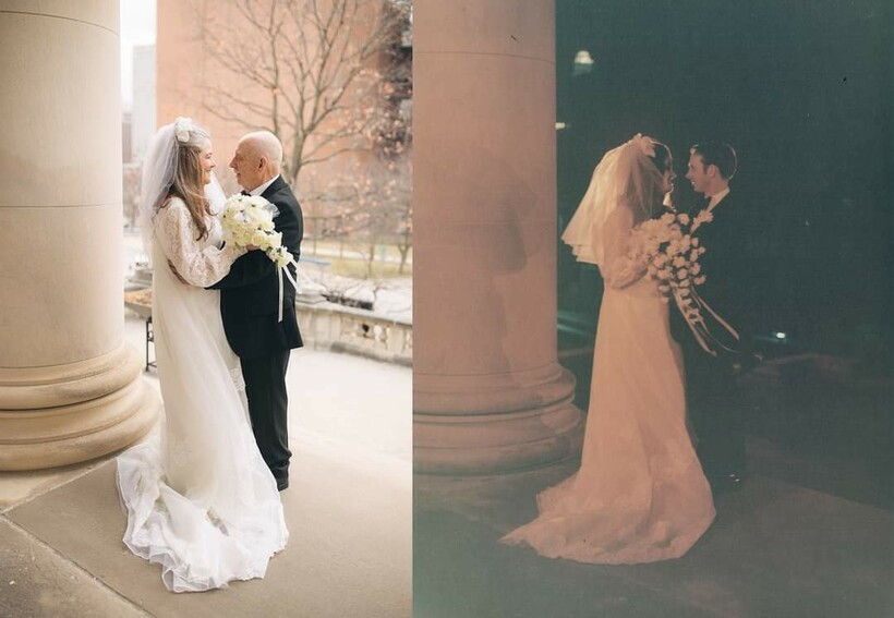 Супруги вновь надели шикарные свадебные наряды, как и в самый счастливый день в 1971 году.
