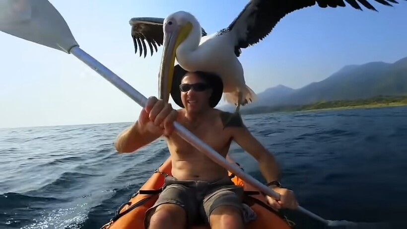 Пеликан по кличке Большая Птица отбился от стаи еще в детстве, он оказался на берегу после сильного шторма, где его нашли люди. Они выходили птенца, научили его летать, а он, в свою очередь, принял спасителей за свою родню. Оказывается, для того чтобы приручить какое-либо животное, зачастую необходимо растить его с малых лет, окружать заботой и любовью, как это бы сделали его настоящие родители.