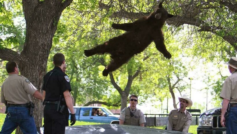 Конечно, летают они тут неспроста: дело в том, что падают мишки из-за транквилизаторов. Животные в поисках пищи часто заходят на городские улицы, могут даже заглянуть в гости к кому-нибудь (да-да, вы не ослышались, мы о таких случаях рассказывали неоднократно!), а иногда забираются и на деревья. В Штатах есть даже специальная служба, которая занимается возвращением животных в лес.