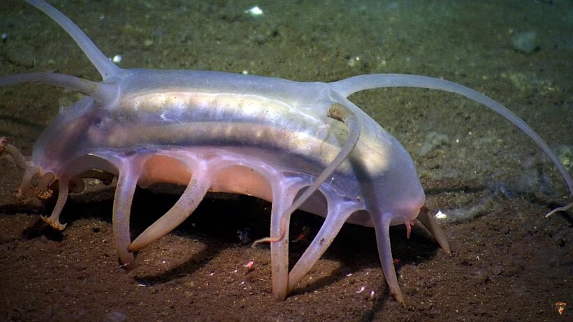 Scotoplanes Globosa можно встретить в Мировом океане на глубине от одного километра и ниже. Скотопланесы отличаются по своему внешнему виду в зависимости от того, на какой глубине они живут. Чем глубже проживает та или иная особь, тем прозрачнее ее кожа. Кстати, этих существ также называют морскими свинками, но не перепутайте водных представителей с их млекопитающими тезками. Scotoplanes Globosa имеет шесть или более пар ног, похожих на трубчатые наросты из брюшка, а во рту у них находятся десятки щупалец, с помощью которых свинки могут подбирать мелкую пищу со дна.