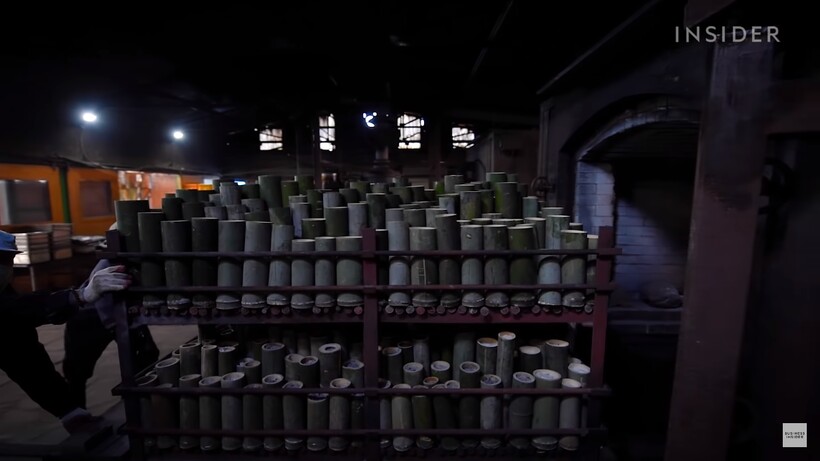 Большая стоимость зависит также от кропотливого и трудоемкого ручного процесса. Он начинается с разрезания трехлетнего бамбука на ровные куски, которые потом набиваются вручную белой морской солью с побережья Кореи. Наполненные солью бамбуковые стволы помещаются в стальную тележку и завозятся в огромную печь. Интересно, что печь должна традиционно топиться только сосновыми дровами и ничем иным. Печь нагревается до 800°С, а время одной только выпечки составляет 10-12 часов. При такой температуре бамбук сжигается полностью, оставляя лишь столбы светло-серой соли. Но это только начало процесса.