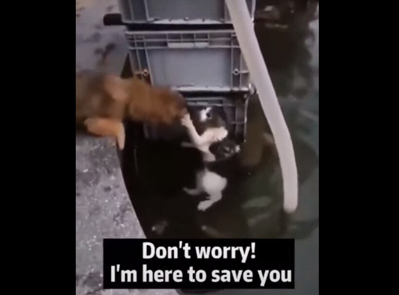Автор видеоролика внизу снял интересный момент, как собака спасла кота, упавшего в воду. Бедолага был напуган и прибился к большому насосу рядом с берегом. Может, он и смог бы выбраться сам, но пес, который шел мимо, не стал это проверять, а решил спасти котика. Он забрался в воду, несмотря на все шипящие протесты кота, и вытащил его из воды на берег. Благодаря этому героическому поступку пес попал в интернет и заслужил массу восторженных отзывов. А вы уже читали о нескольких хаски, которые спасли и вырастили кошку?