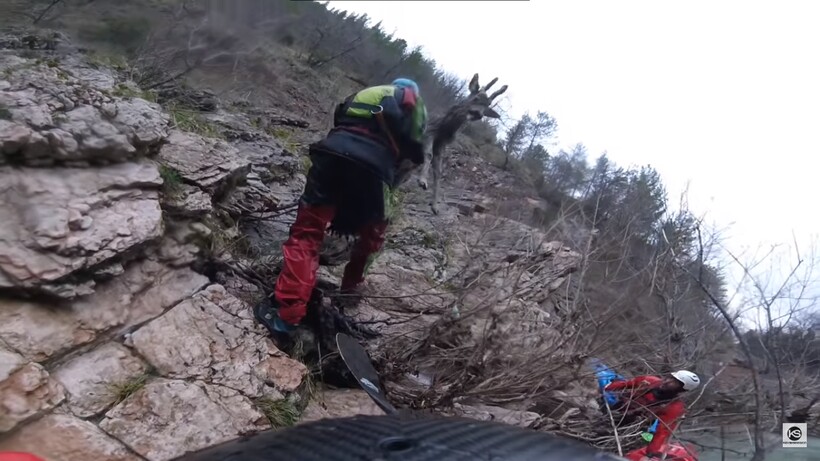 Скорее всего, бедняга хотел перейти реку в брод, но не рассчитал свои силы и мощь горного потока. Река подхватила животное и понесла. На счастье оленя, судьба послала ему Капиццо и его друзей. Фабрицио видел, как животное сражается за свою жизнь, стараясь пристать к берегу то с одной, то с другой стороны, и как река всегда оказывалась сильнее. Из-за скользких копыт и влажных камней оленям часто не выбраться из воды самим. Но все же мужчине удалось поймать оленя и поднять его из воды на свой каяк.