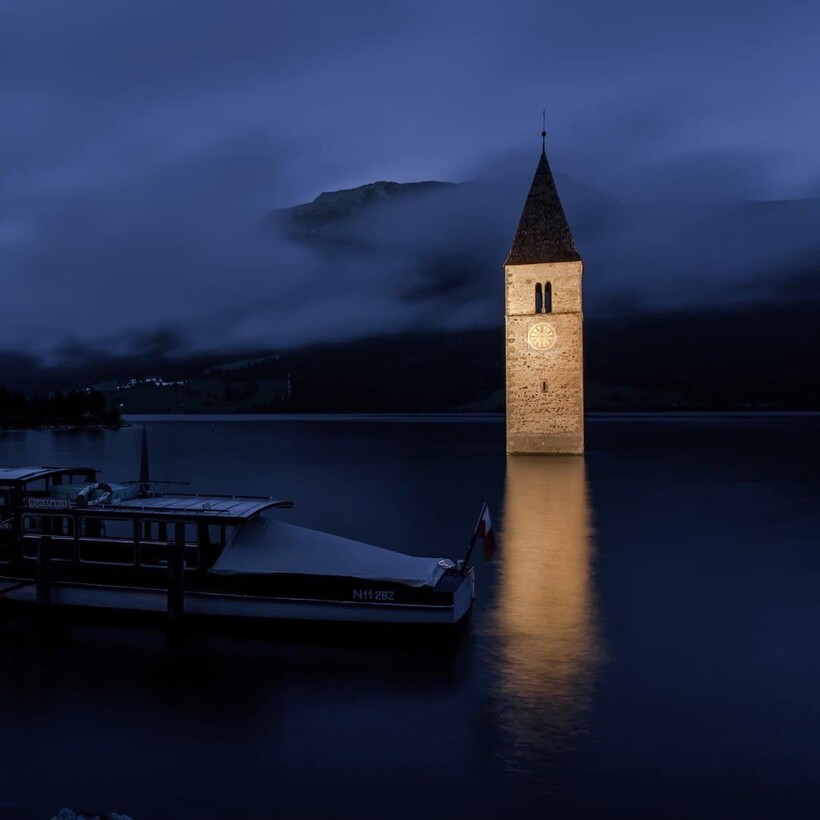 Семь десятилетий из воды торчала лишь колокольня, но этим летом по затопленным улицам можно прогуляться. Озеро Резия в Италии известно своими потрясающими пейзажами гор и одинокой колокольней, возвышающейся над водной гладью. Пейзажи тут настолько хороши, что они даже послужили вдохновением для сериала Netflix «Затопленный город».