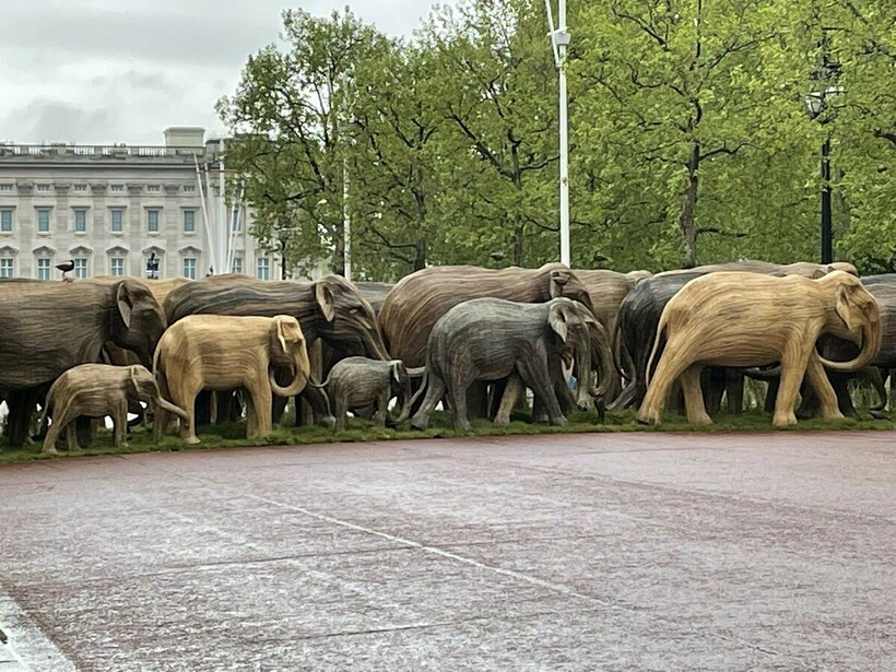 Если бы королева Елизавета на днях раздвинула шторы на окне Букингемского дворца, то она была бы ошарашена стадом слонов на улице. Правда, королева с начала пандемии находится в изоляции в Виндзоре, поэтому такую картину ей не посчастливилось наблюдать.