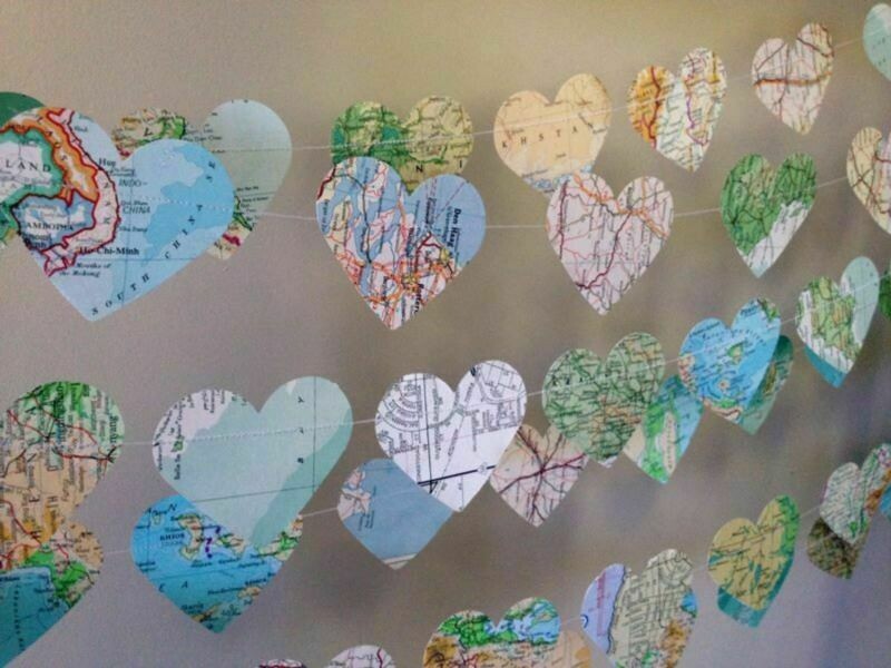 Если у вас осталось множество путеводителей с картами, то не стоит спешить сдавать это как макулатуру. Сделайте из старых страничек путеводителей оригинальную гирлянду.