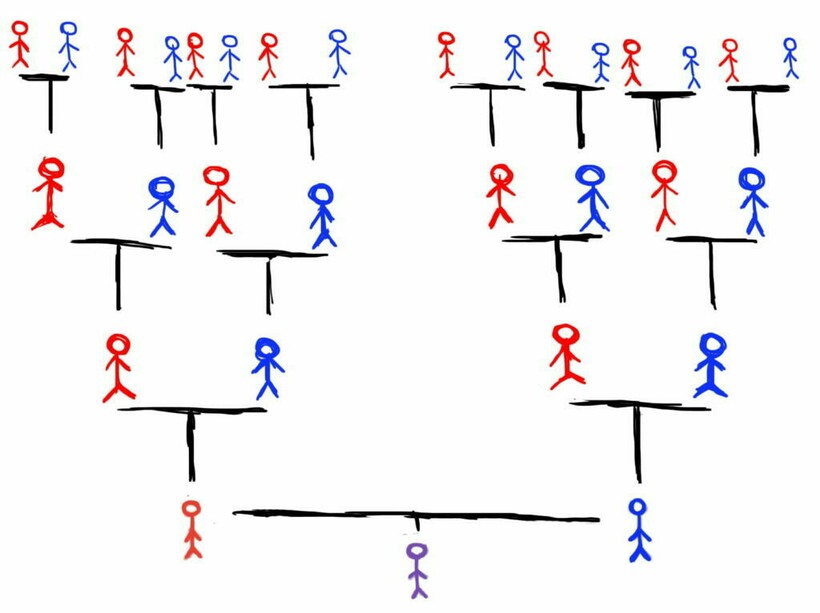 Примечательно, что мы ведем отсчет родословной не от супружеской пары, и даже не от реальных людей. Это просто воображаемые точки, от которых можно вести отсчет человеческой популяции.
