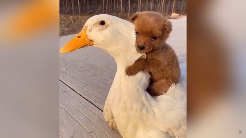 Вы, наверное, не раз видели обнимающуюся влюбленную парочку на набережной или радостные объятия двух лучших друзей. Это стало настолько обыденным, что мы даже перестали обращать внимание на них. Однако если бы вам попались на глаза двое товарищей, один из которых собака, а другой — гусь, то вы бы точно остановились, чтобы на них посмотреть. В соцсетях набирает популярность видео необычной дружбы белого гуся и очаровательного щенка, который усаживается на своего друга и обнимает за тонкую и грациозную птичью шею.