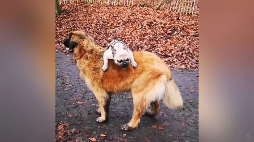 Многие владельцы собак знают, что их псы в восторге от дальних поездок на автомобиле. Стоит лишь открыть дверь машины, как пес сразу запрыгивает на сидение. Кажется, собака так долго ждала этого момента, чтобы расположиться на мягком автомобильном кресле, высунуть язык и смотреть на проносящиеся мимо деревья через открытое окно. Но что делать, если хозяин уже давно никуда с собой не брал? Есть решение — покататься на ком-то другом. Например, на своем приятеле, который не прочь хоть немного побыть для маленького песика средством передвижения.