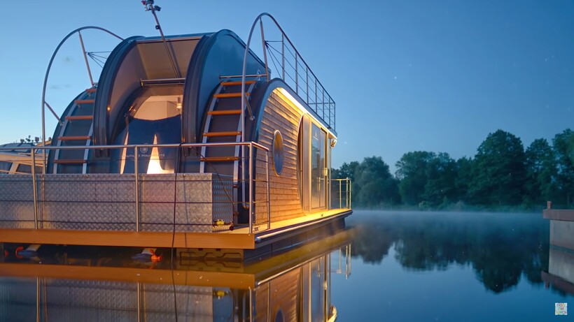 Nautilus — плавучий дом «под ключ» — был разработан простым архитектором в Германии. Он включает в себя и кухонный уголок с гостиной и рабочим местом. Также houseboat оснащен санузлом и системой хранения вещей. Производитель заявляет, что в доме на воде может прекрасно провести время сразу восемь персон.