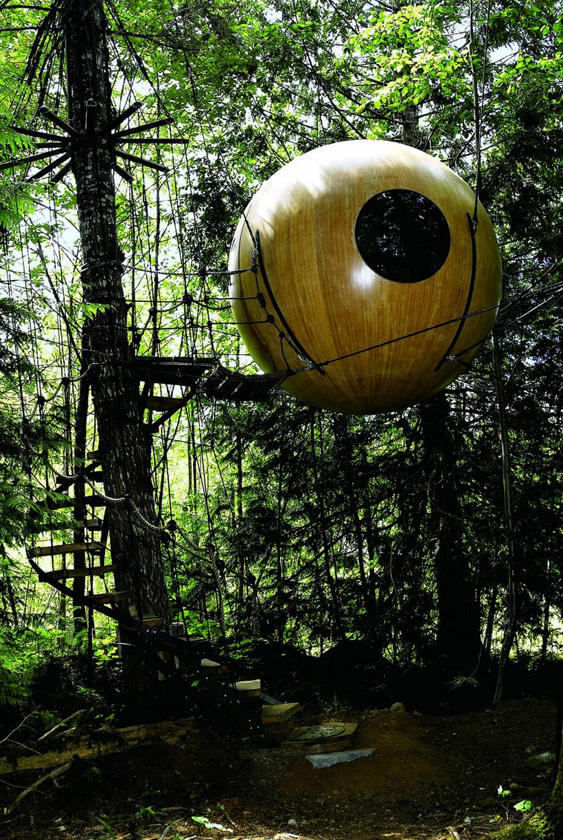 Разработанный Лукашем Косом, домик был построен на четырех деревьях, недалеко от озера Мускока в Онтарио. Он словно плавает в воздухе как большой японский фонарь на сваях.